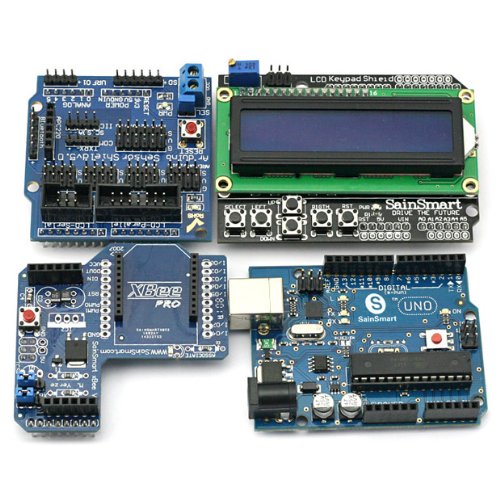 SainSmart Arduino UNO + SainSmart LCD Keypad Shield + SainSmart XBee Shield + SainSmart Sensor Shield V5 Feature